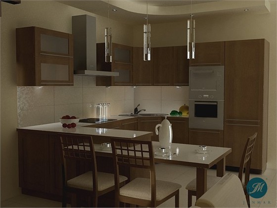 Materiały: fronty drewno buk, blat laminowany z doklejką buk.